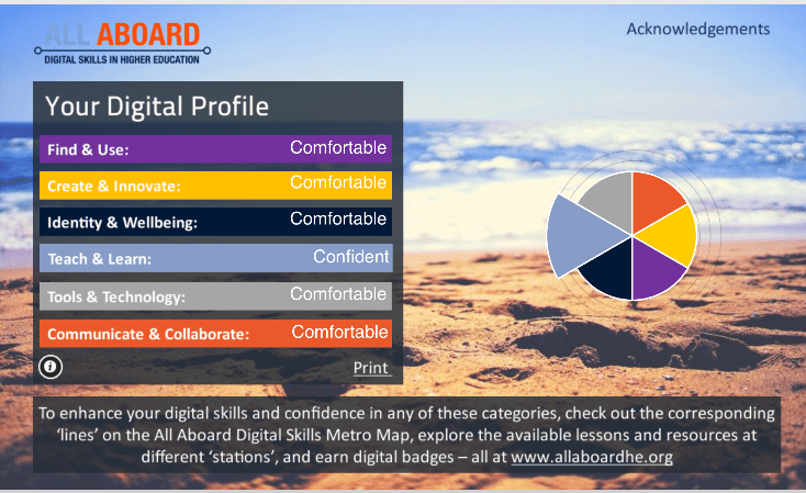 You know the type of facebook quizzes that lets you answer a bunch of questions and then tells you what type your personality is? Well, that’s not entirely the case here but it’s pretty similar. Here you have my “digital” profile, I don’t think you can really tell much about me from it but at least you’ll know that I’m comfortable most of the time. At first, I got excited about the quiz because I thought they would analyze the answers we picked and in the end give us a brief personality description however they don’t really do that. Instead they just show you a pie-chart and just arrange your answers and that’s literally it. I didn’t learn anything about myself from the quiz, I basically chose the answers and then nothing.. As you can see I need to work more on my digital skills so that next time I take the quiz I’ll be confident in all aspects and not just one.