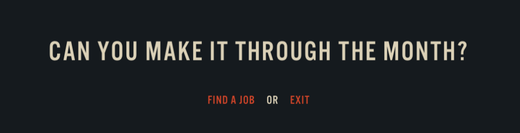 This online game was designed to make players aware of how easy it is to become homeless. The game challenges players to “make it through” one month of life. You have no job, no home, and your savings are basically gone.